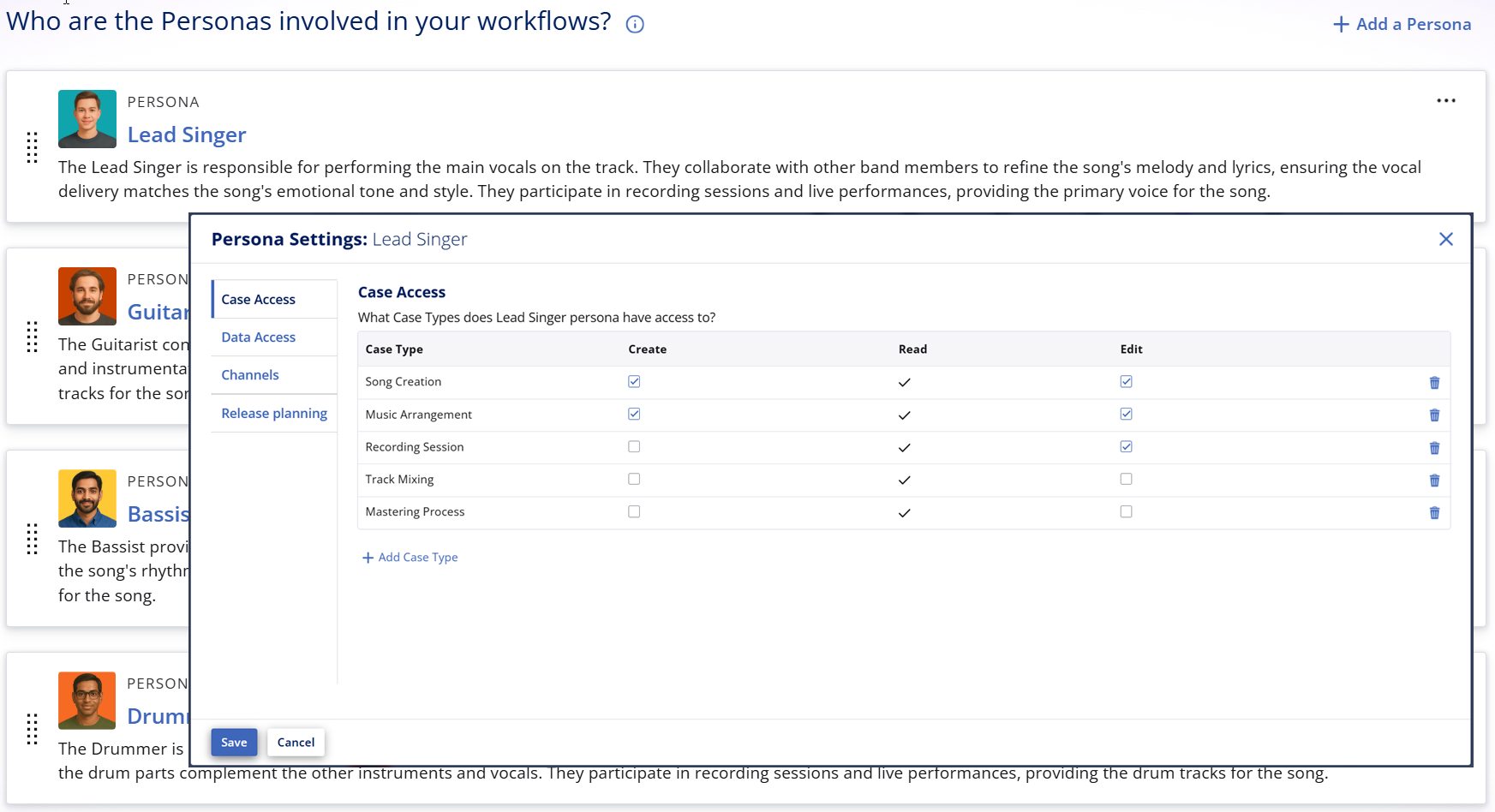 High fidelity persona development ensures that each role is clearly aligned with the solution and includes concise, accurate role descriptions—like ensuring every band member understands not just their part, but how it contributes to the overall sound. This involves identifying which case types and data objects each persona can access, assigning appropriate communication channels, and mapping personas to specific implementation releases.