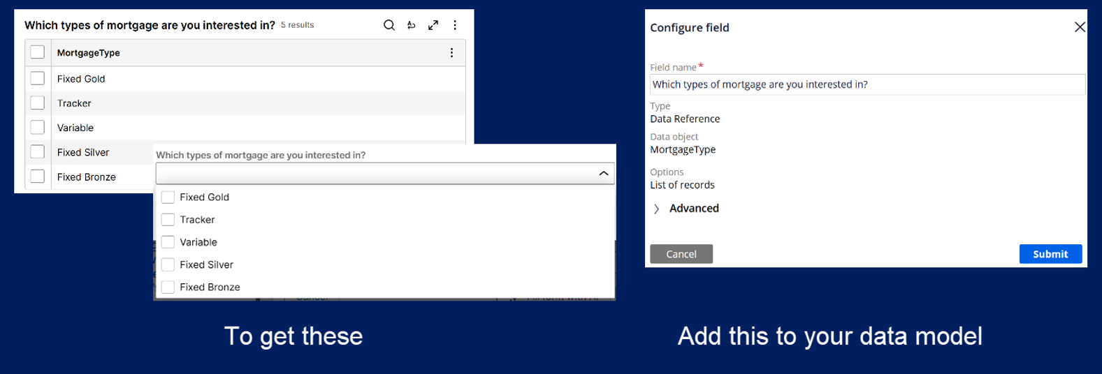 Step 2: Choose Your Data Model option Based on your business outcome, select the appropriate data field type: