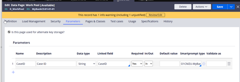 4. Similarly configure the D_WorkPool to fetch a single case record based on the custom key which will be CaseID in this case.