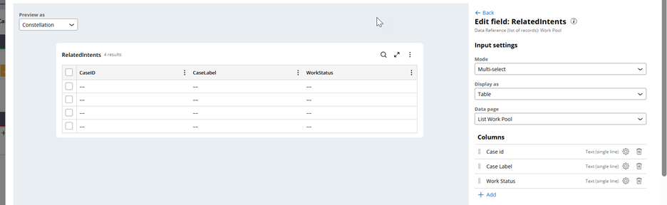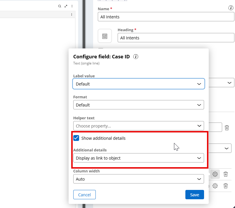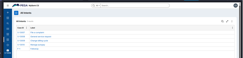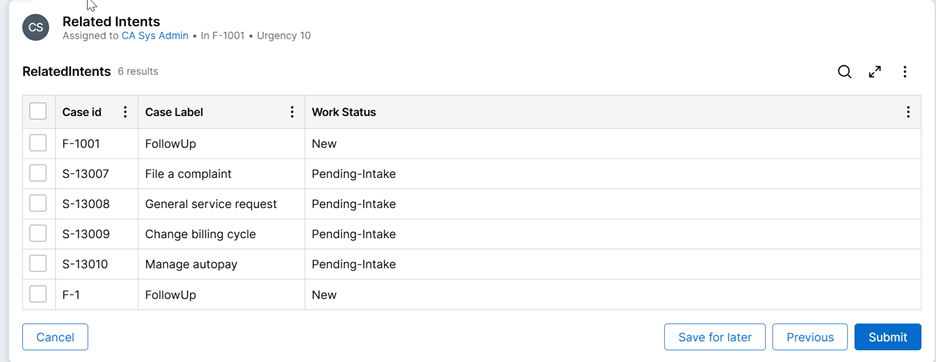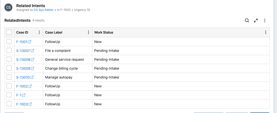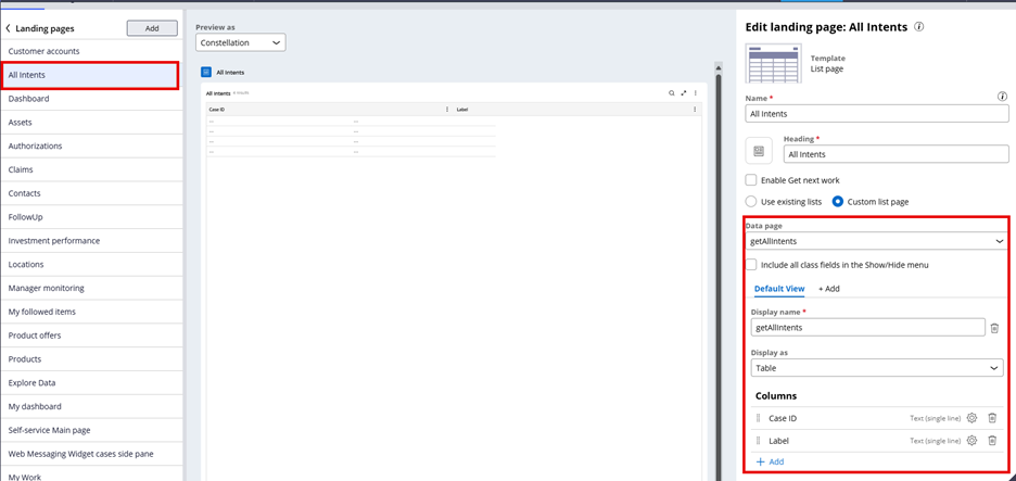 4. Similarly, you can use a list view to configure a read only list of intents during case processing.
